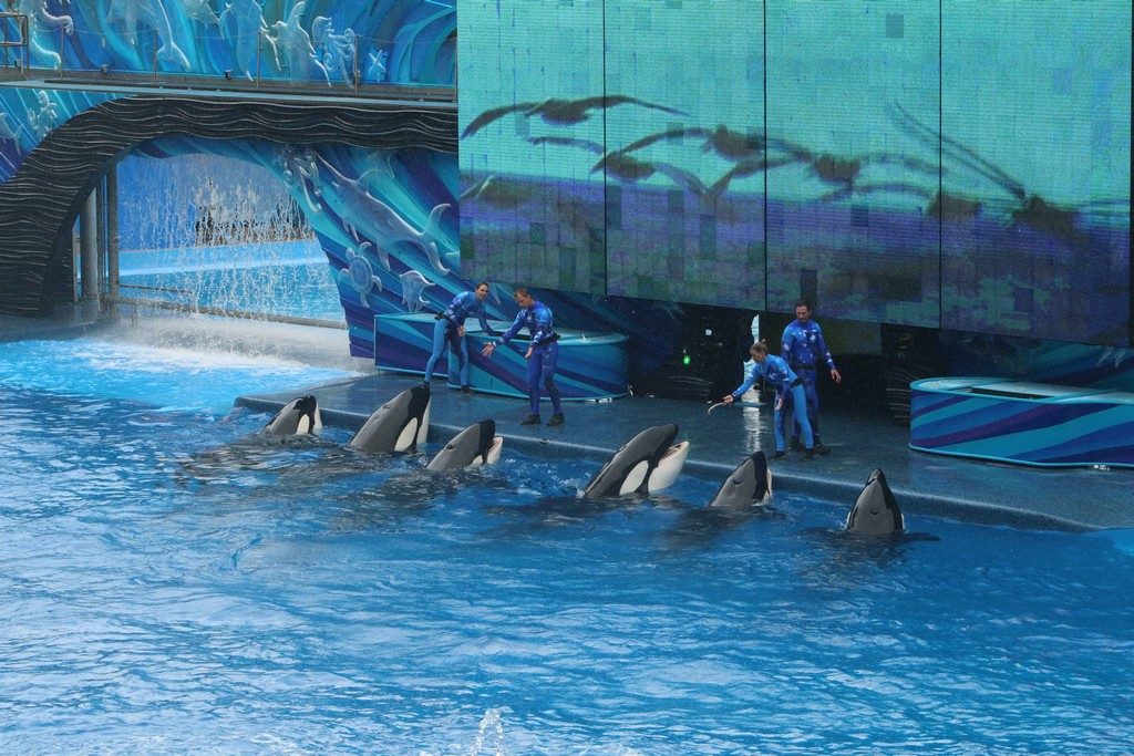 Het was inmiddels tijd voor de Orka show. We zaten gelukkig hoog en droog, maar konden het prima zien.