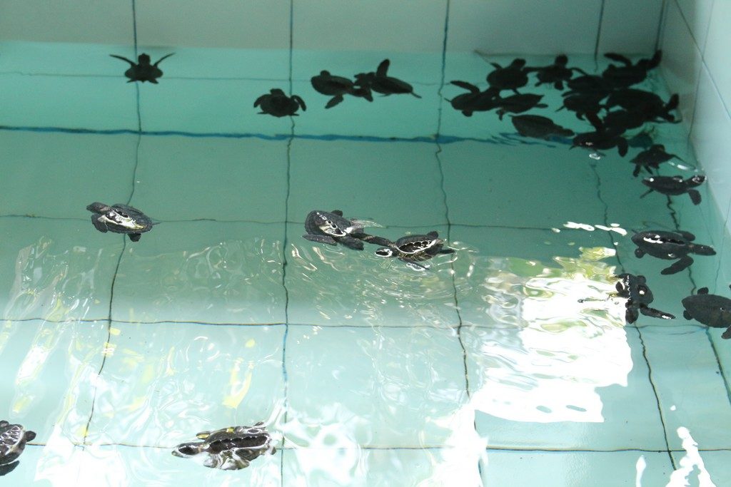 De eerste schildpad die te water ging was Sjon Schildpad, van Damian.