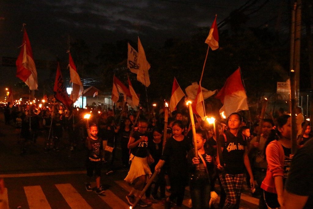 ’s Avonds werd er nog een lichtjesoptocht georganiseerd als voorbereiding op de onafhankelijksdag de volgende dag. We gingen kijken bij de McDonalds, waar de hostess van de villa had gezegd dat we het zouden kunnen zien. Alhoewel het om 6 uur zou beginngen, duurde het uiteindelijk tot een uur of 7 voordat er daadwerkelijk iets te zien was. Het bleek echter dat je het vanaf de McDonalds precies eigenlijk niet kon zien, ja, ze liepen de krusing er naast over, maar dan precies de andere kant op. We hadden het net op tijd door en staken snel over om op de juiste plaats te gaan staan. Hierdoor hadden we prima zicht, beter dan alle andere toeristen die na ons tot dezelfde conclusie kwamen. Wel moet gezegd worden dat we ook niet helemaal veilig stonden, zo helemaal vooraan. De lichtjes van de parade waren namelijk brandende fakkels waar iedereen mee liep, volwassenen maar ook kleine kinderen. Een paar keer kwam zo’n fakkel best dichtbij. Je kan je trouwens niet voorstellen dat in Nederland een avondvierdaagse zo met fakkels zou lopen, ook omdat tussen de mensen ze ook nog met grote nylon vlaggen liepen te zwaaien.