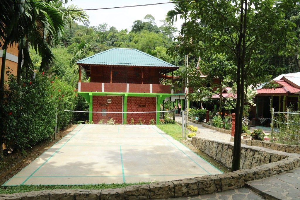 We gingen daarna lopend door het dorp met onze gids mee naar Ecotravel om de uitleg over onze jungle tocht te krijgen. Er was natuurlijk weer van alles te zien. We vonden natuurlijk vooral het badminton veld in de buitenlucht erg leuk.