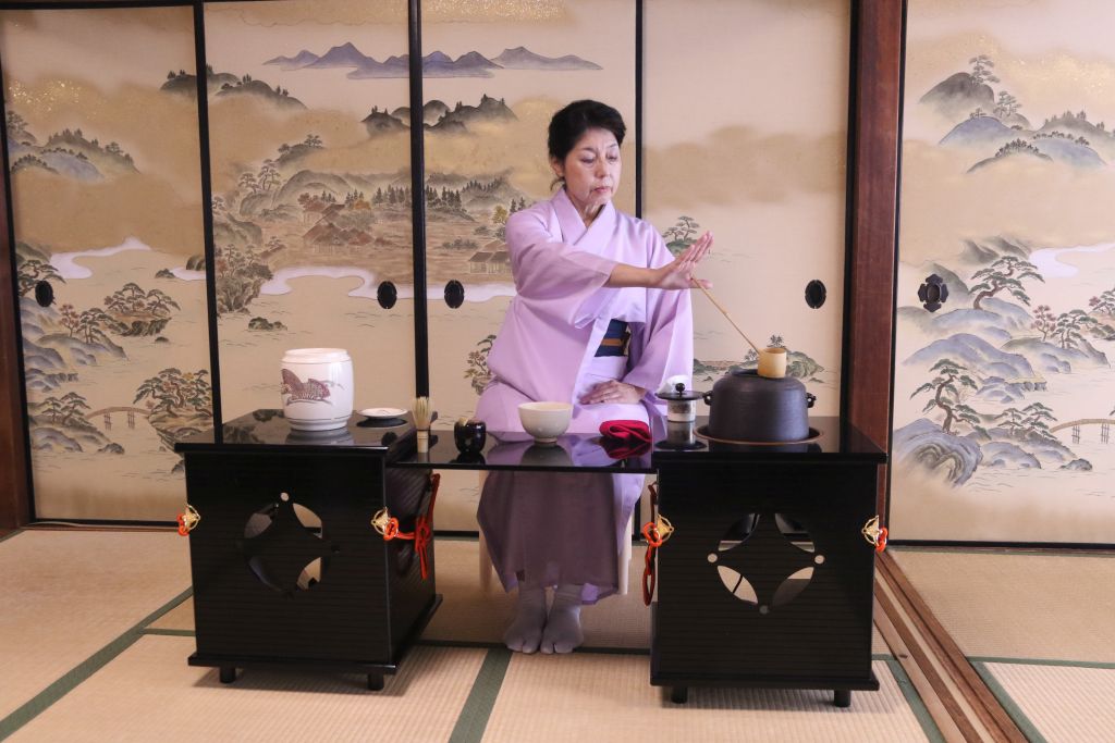 De theedame deed een heel verhaal over hoe de theeceremonie werkt, de belangrijkheid er van, en hoe je de thee maakt natuurlijk.
