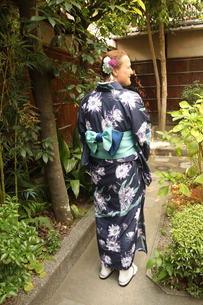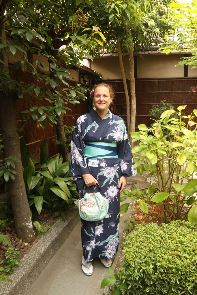 Allemaal werden we gestript van westerse kleding, gelukkig op ondergoed na, en in kimono’s, touwtjes en banden gewikkeld. Bij de ene persoon zat z’n buik meer in de weg dan bij de anderen. Gelukkig hing er een bordje dat vroeger tentijde van de samurai’s het een teken van sociale status was. Zo zie je maar, het is allemaal een kwestie van perspectief.