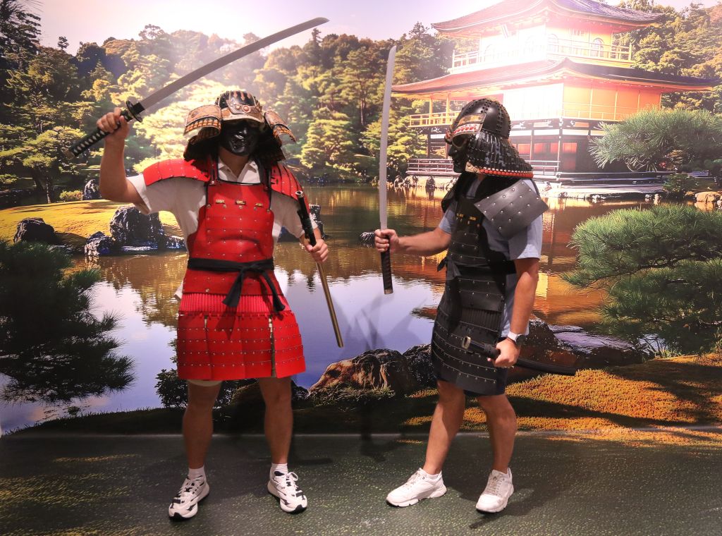 Hierna moesten/mochten de kimono’s weer uit en gingen we naar deel 2 van de ochtend, het samurai en ninja museum. Het was een klein stukje lopen van de theetantes naar samurai’s, maar ook nu stond het zweet in plasjes op diverse plekken van het lichaam.