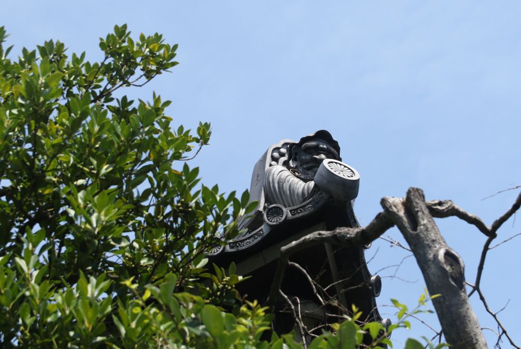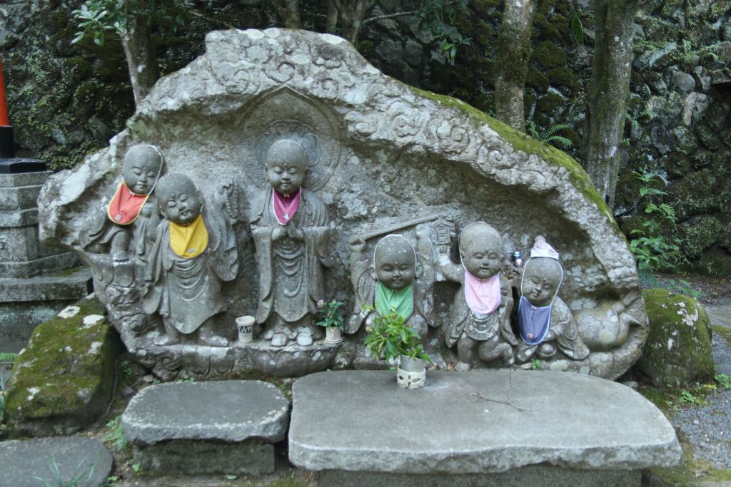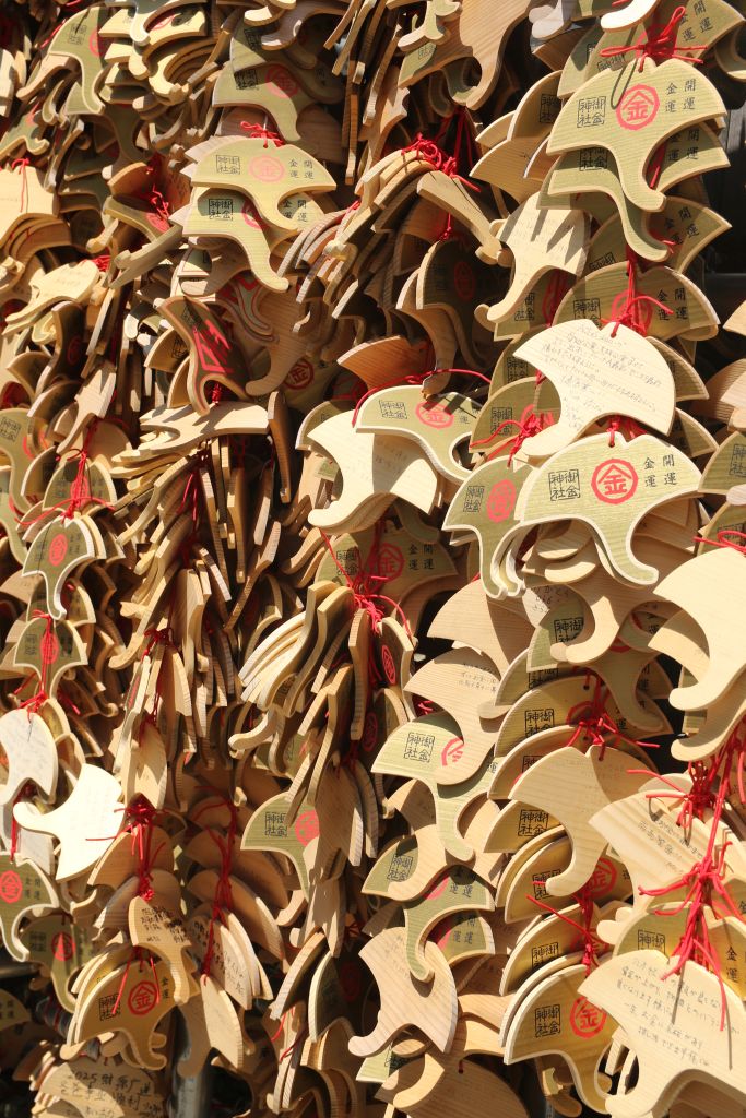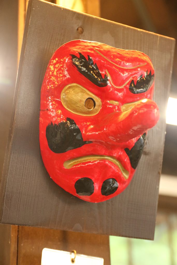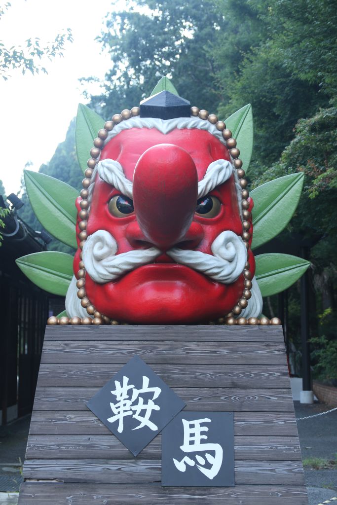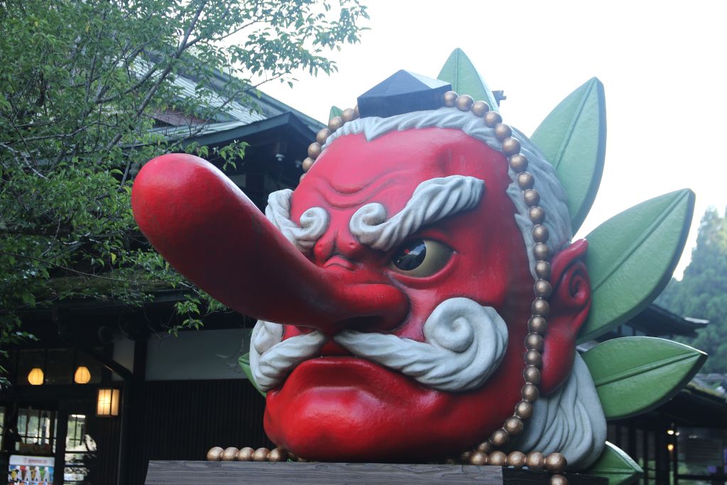 Nu deze etappe er op zat, was het tijd om terug te gaan. We besloten terug wel de trein te nemen, het station zat vlak bij de tempel. Hier hingen nog wat beelden van een Tengus, een mythisch wezen en wij vermoeden familie van Pinokkio.