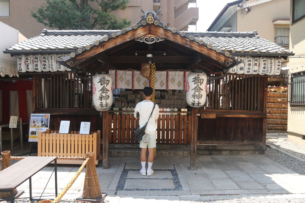 Aan de overkant van het museum kochten we wat broodjes voor de lunch en keken naar de afstand naar de Mikane-jinja tempel. OV leek geen optie, en de optie die er was, was met bussen. Aangezien deze ver onderaan de ladder staan bij Richard qua vervoer, nog net boven de pogostick en skippybal, en op een gedeelde tree met de waterfiets, namen we een taxi.