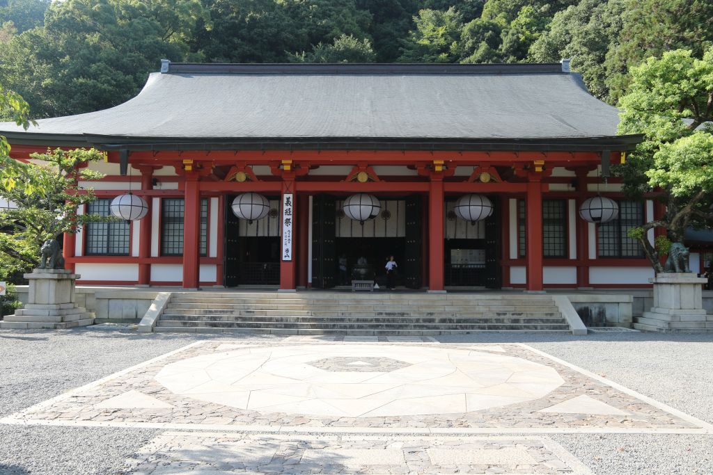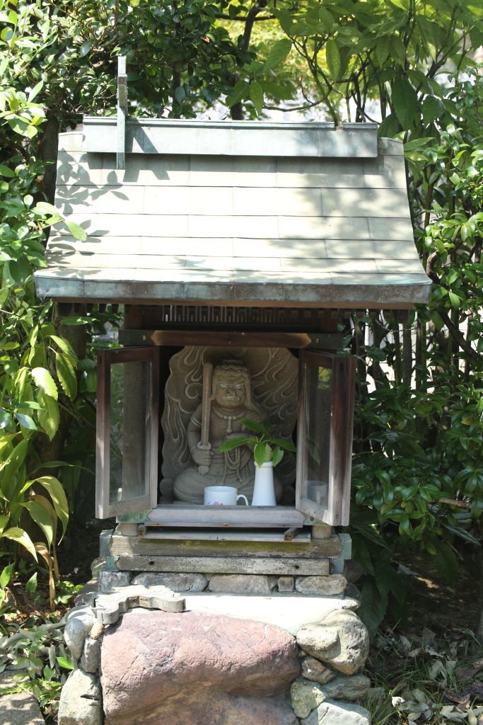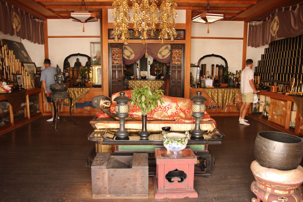 We werden afgezet bij de tempel, een klein stadstempeltje, met een iets te grote gouden Tori.