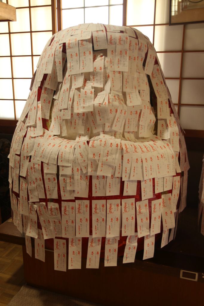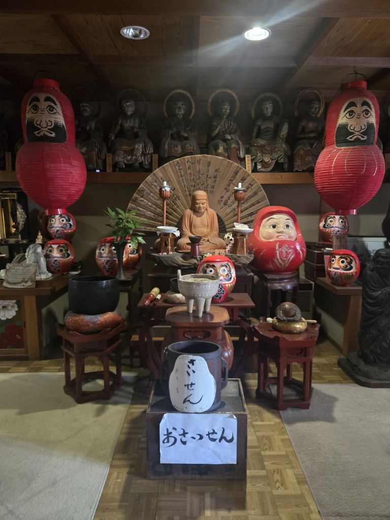 Hierna gingen we naar een andere tempel midden in de stad, de Daruma-dera. Deze tempel staat helemaal vol met Daruma poppen, zo’n 8000. We hebben het niet nageteld, we geloofden Internet deze keer. We werden in ieder geval hartelijk ontvangen door het Japanse vrouwtje achter de balie, die met behulp van Google translate ons een hele uitleg in het Nederlands gaf over de tempel en alles er omheen.
