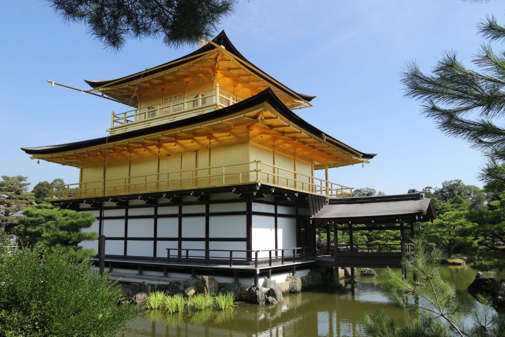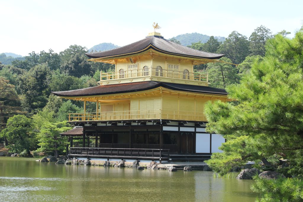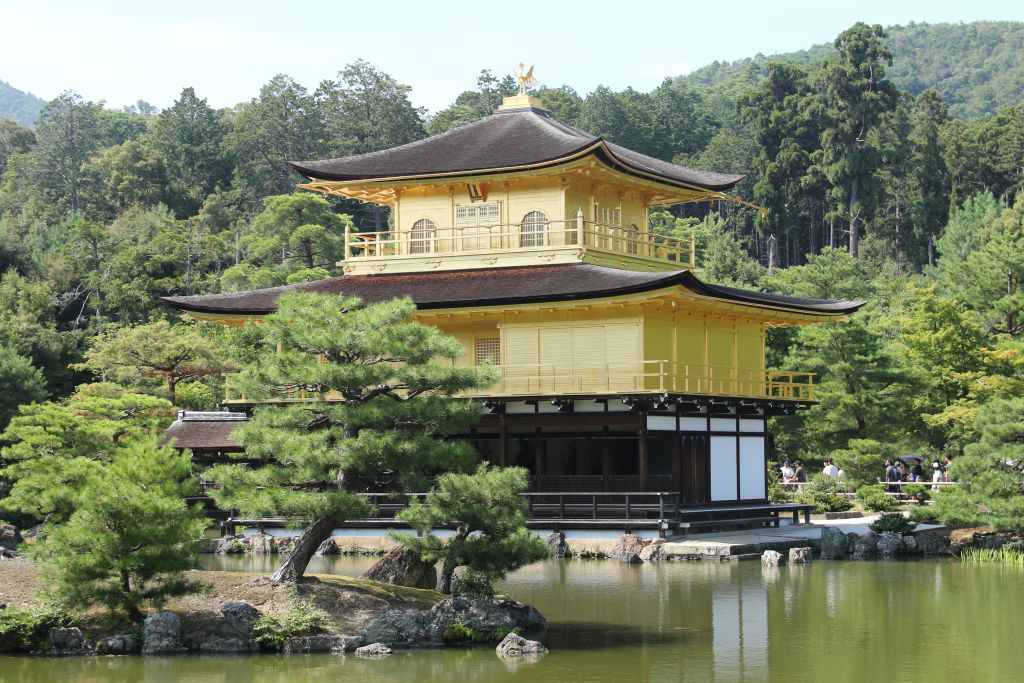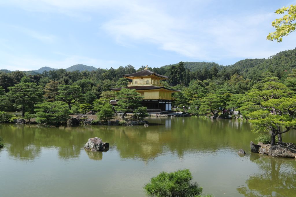 We waren nog niet uitgetempeld, de volgende was de Kinkaku-ji tempel. Dit is een grotere tempel, meer aan de rand van de stad, die een gouden paviljoen heeft. Naar verluidt is er 20 kg goud gebruikt.