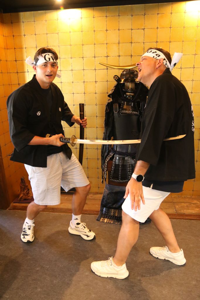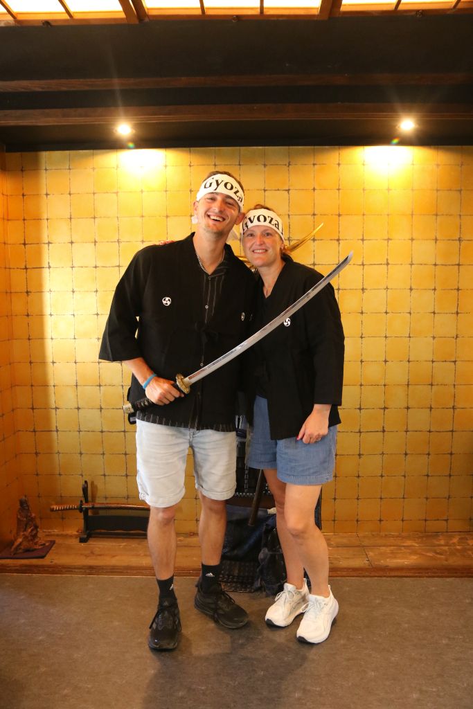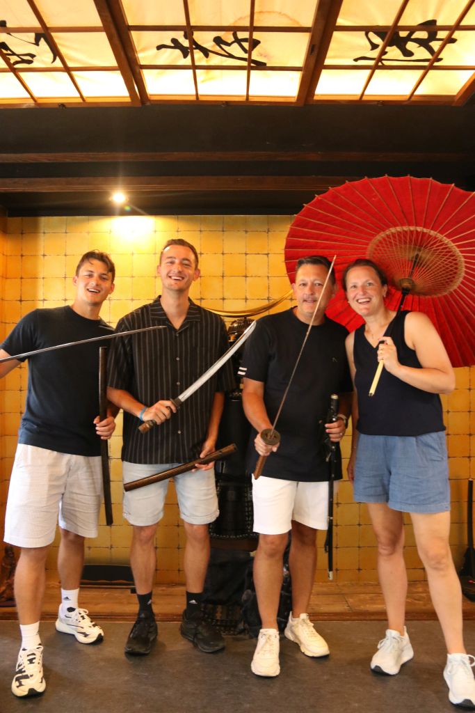 We konden gelukkig al wel naar binnen en we wachten totdat we konden beginnen. Hierdoor konden we nog wat aan onze katana techniek werken.