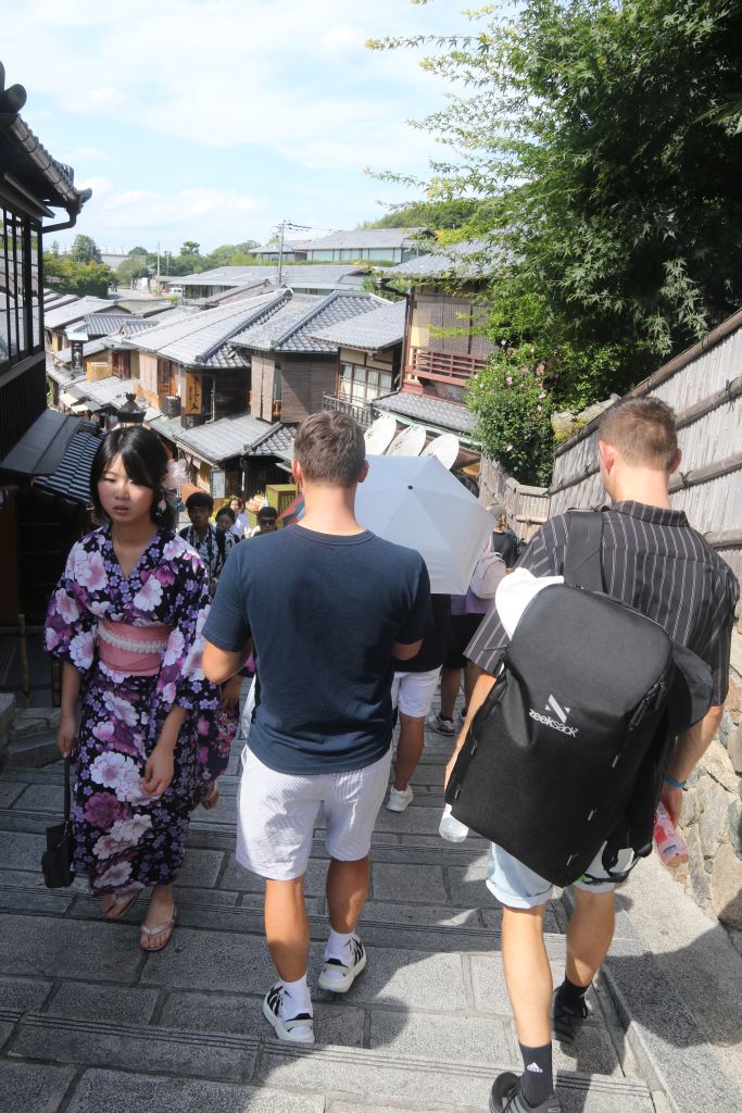We konden dus weer op pad. Cynthia had gisteren het programma van vandaag omgegooid om ruimte te maken voor de gyoza workshop, maar in de middag hadden we dus nog tijd om een aantal van de bezienswaardigheden van Kyoto te bezoeken.