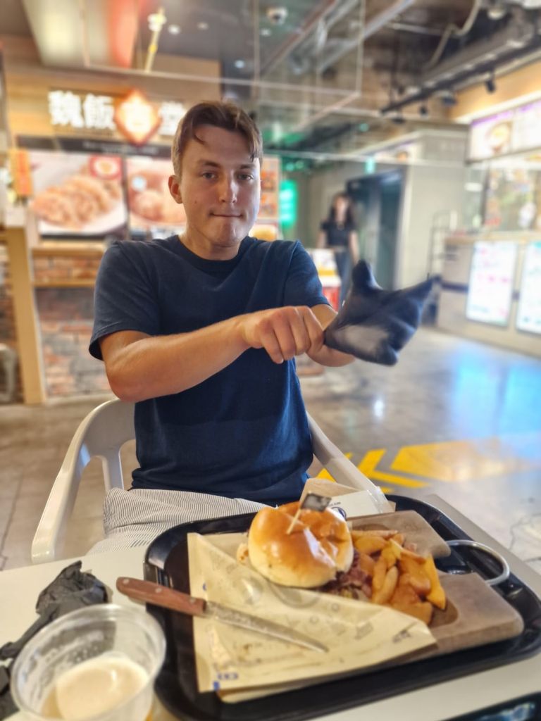 ’s Avonds hadden we nog iets nieuws op de planning, maar eerst gingen we weer even eten in de foodhall. Dit blijft een prima keuze. De Wagyu burgers zijn zo juicy dat je er handschoenen bij krijgt.