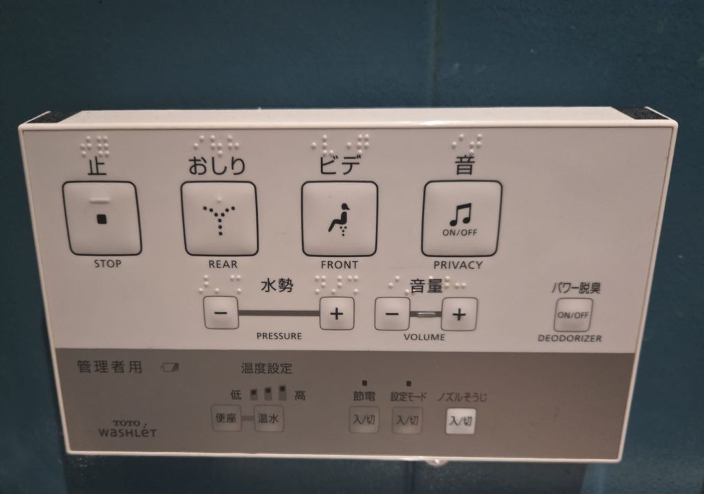 Zoals je misschien weet, zijn de Japanners wel van de snufjes, en zo hebben ze van die toiletten met verwarmde brillen en billensprayers. Sommige toiletten, zo ook hier bij de foodhall, hebben ook nog een extra snufje, de privacy mode. We hebben het nog niet geprobeerd, maar of er gaat hele harde muziek spelen, of je hoort zulke poep geluiden dat je eigen geluid gecamoufleerd wordt. Het lijkt toch een beetje het nut voorbij te schieten want als je muziek hoort uit het toilet naast je, weet je nog steeds dat die persoon stevig zit te beren.