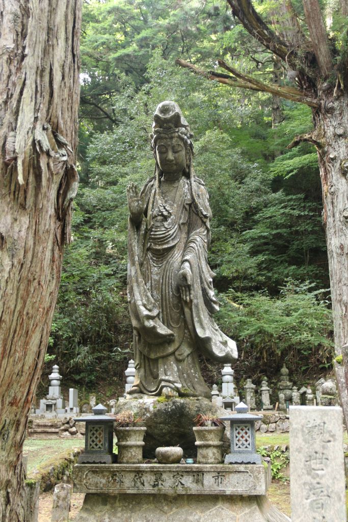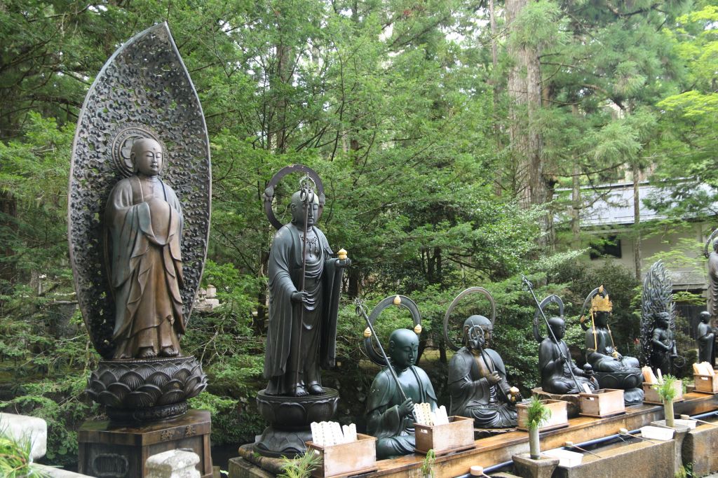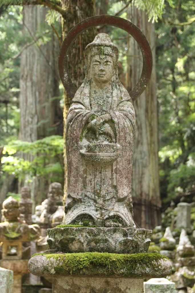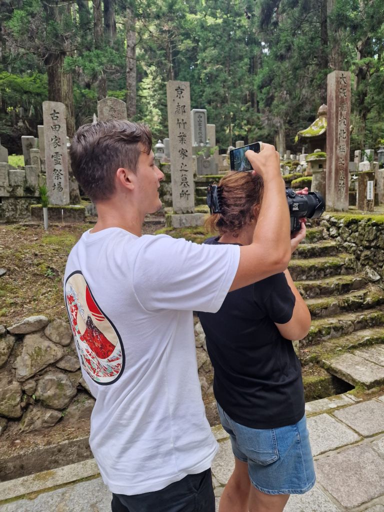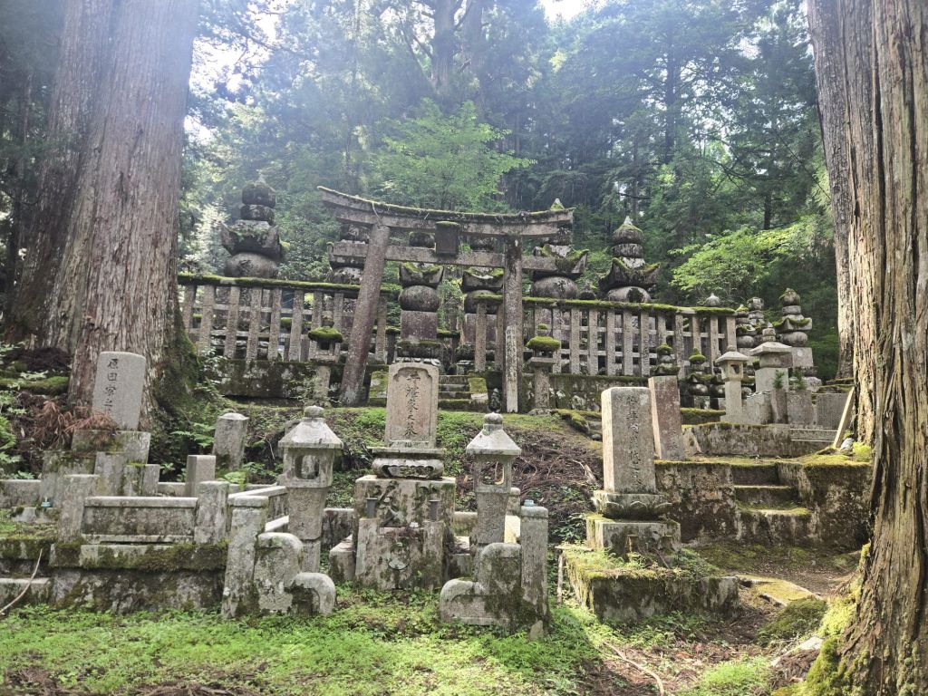 Hierna gingen we op pad. Dit is een heel mooi dorp en door de afstand van de bewoonde wereld, niet superdruk met toeristen. Na wederom een lunch in een klein koffietentje, gingen we op pad over een pad door een hele grote boedhistische begraafplaats richting een mausoleum van Kobo Daishi, een boedhistische monnik die hier een nieuwe stroming was gestart.