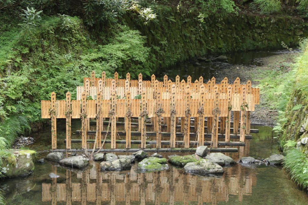 We gingen de Ichinohashu brug over, en liepen langs allerlei ornamenten. Een bepaalde vorm kwam vaak terug en we vroegen ons af wat het betekende.