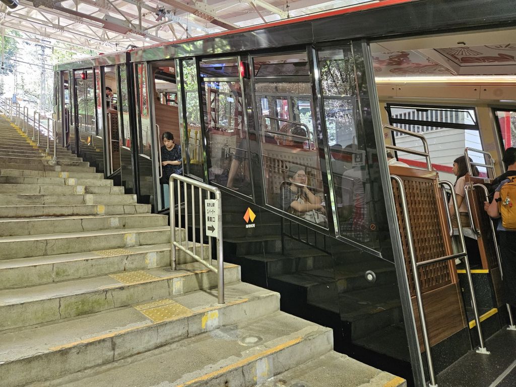 Vanaf het station van de kabeltrein, zouden we eigenlijk nog een stuk met de bus moeten. Aangezien de positie van de bus op de transportladder nog niet veranderd is en het maar een heel klein stationnetje is, was de kans op veel taxi’s vrij klein.