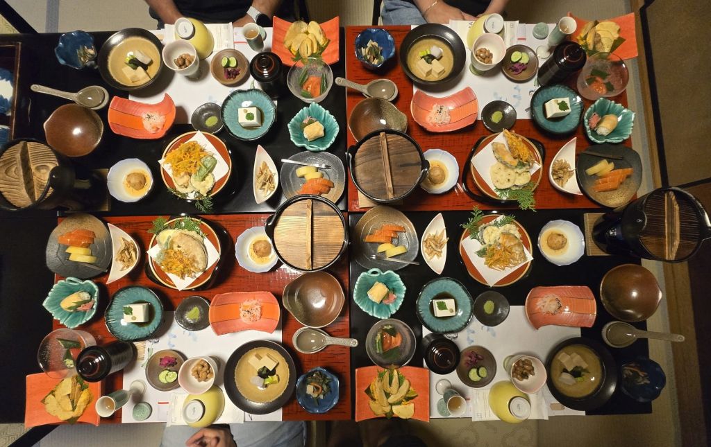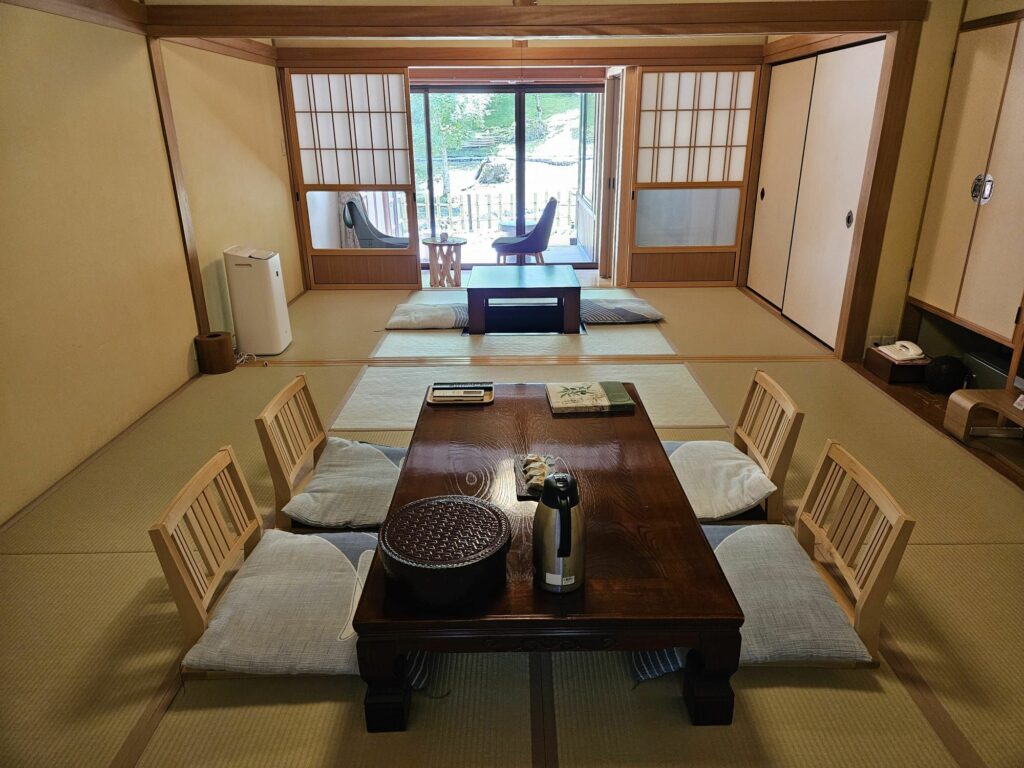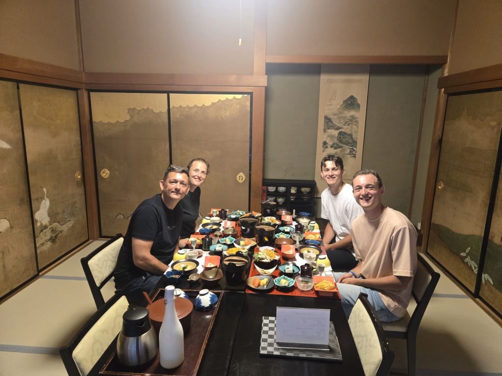 Het mini-klooster was echt supermooi en erg rustig. We werden naar onze kamer geleid en dat was echt een traditionele kamer, met echte tatami matten, lage tafels en geen bed. We hadden wel één van de weinige kamers met een eigen badkamer, op speciaal verzoek van Cynthia.