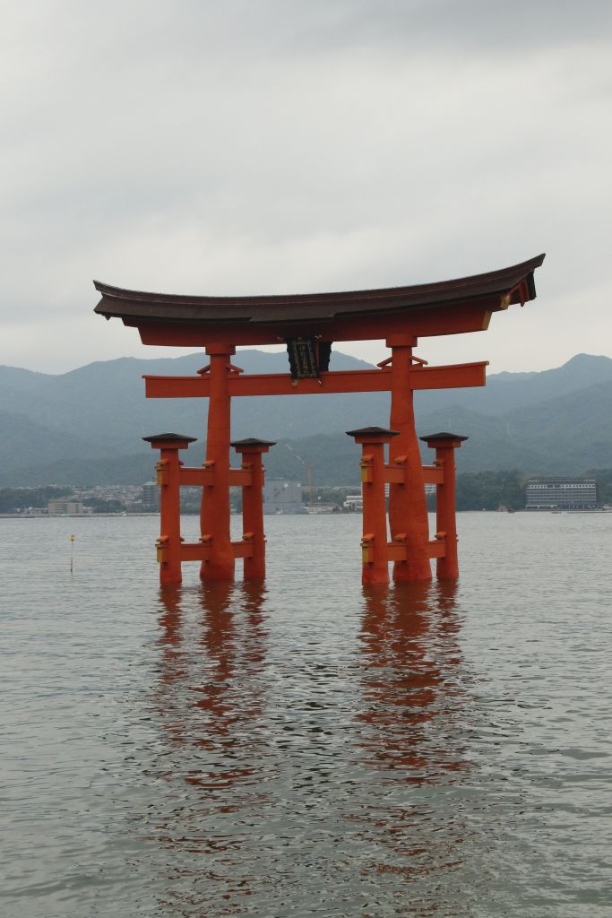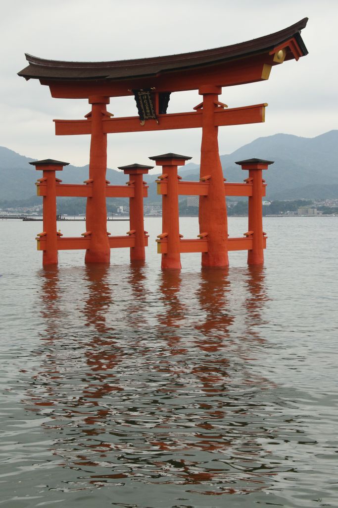 We liepen langs diverse beelden en winkeltjes, om bij de eerste trekpleister aan te komen, een joekel van een Tori, in het water.