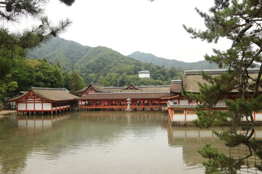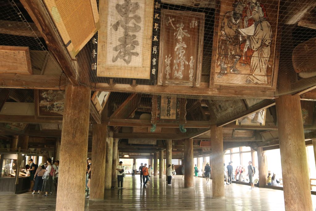 We liepen omhoog richting een hele grote overkapping met uitzicht over de Tori en de volgende stop, een Shrine gebouwd op het water.