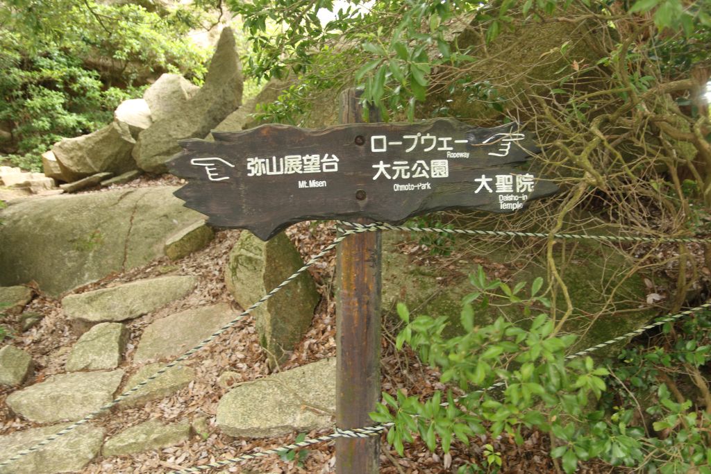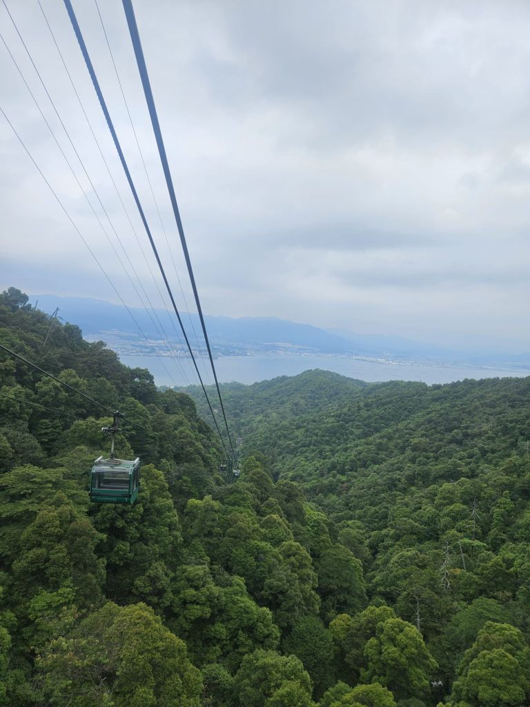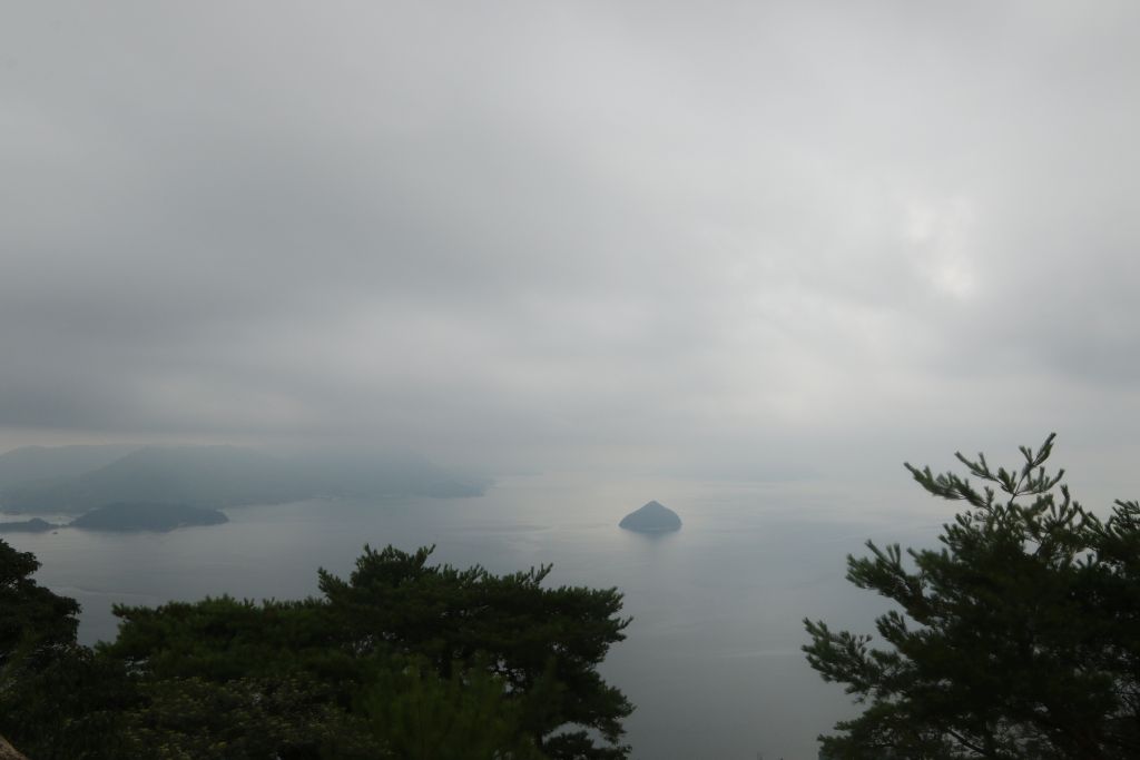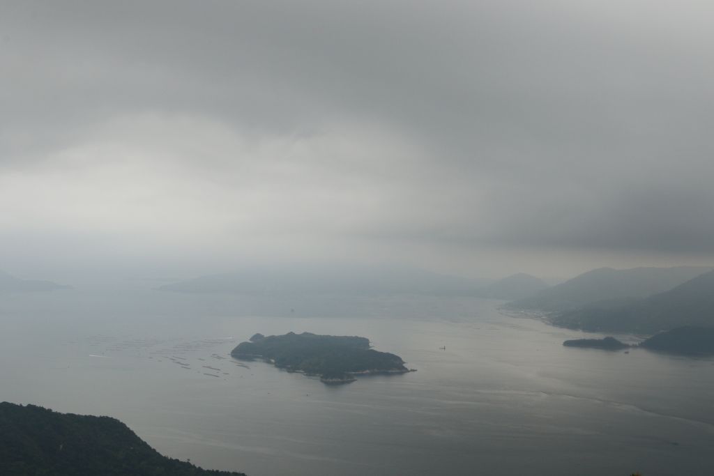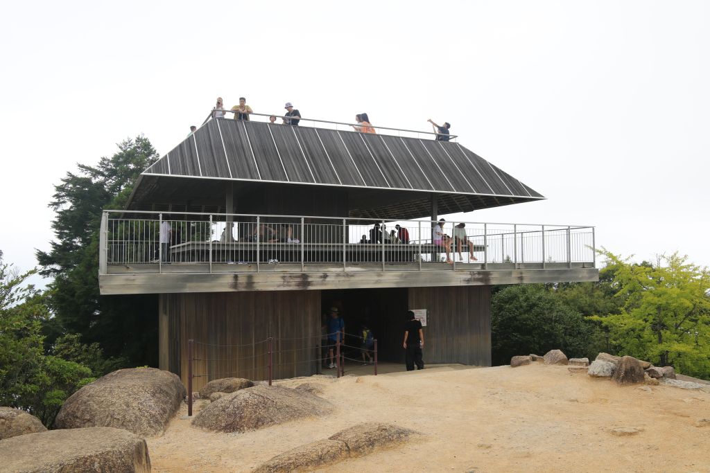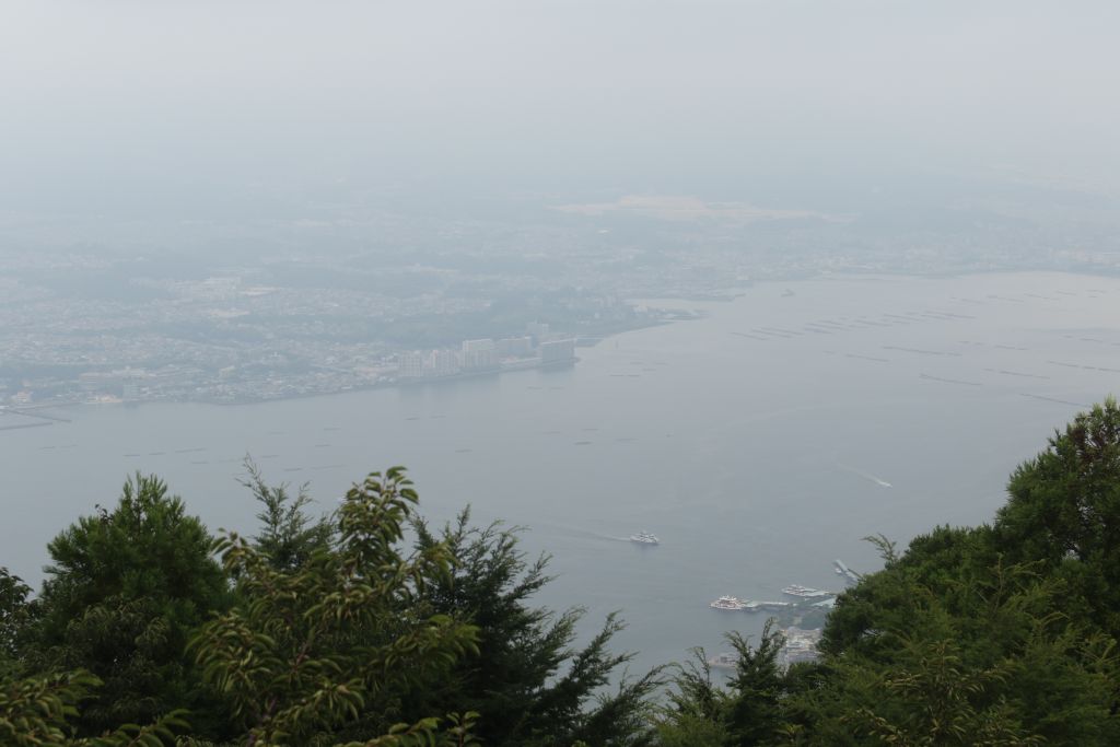 We stapten uit en liepen naar het observatie dek, een kleine maar pittige klim. Vanaf hier kon je onder andere Hiroshima zien liggen. Ook kon je het hoogste punt van het eiland zien, Mount Misen. Het was alleen wel wat heiig waardoor we niet verder konden kijken.