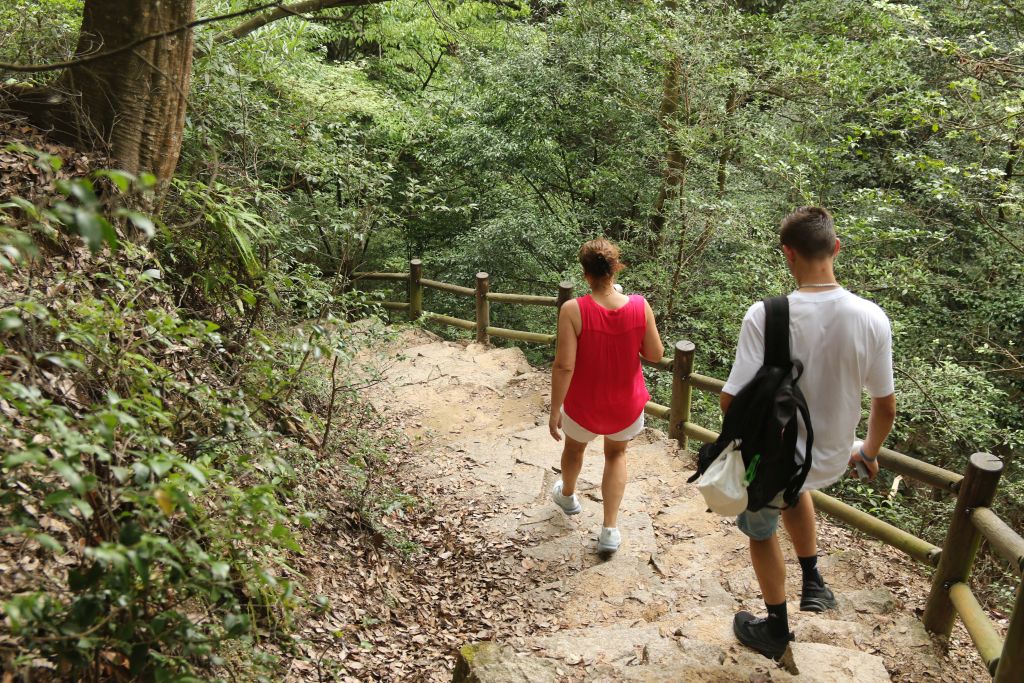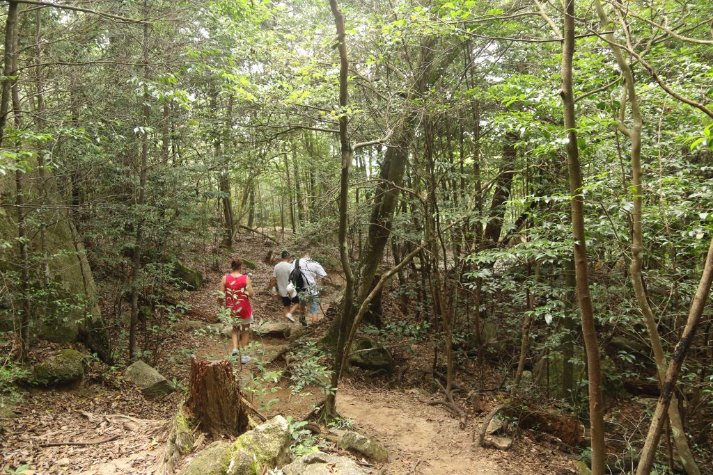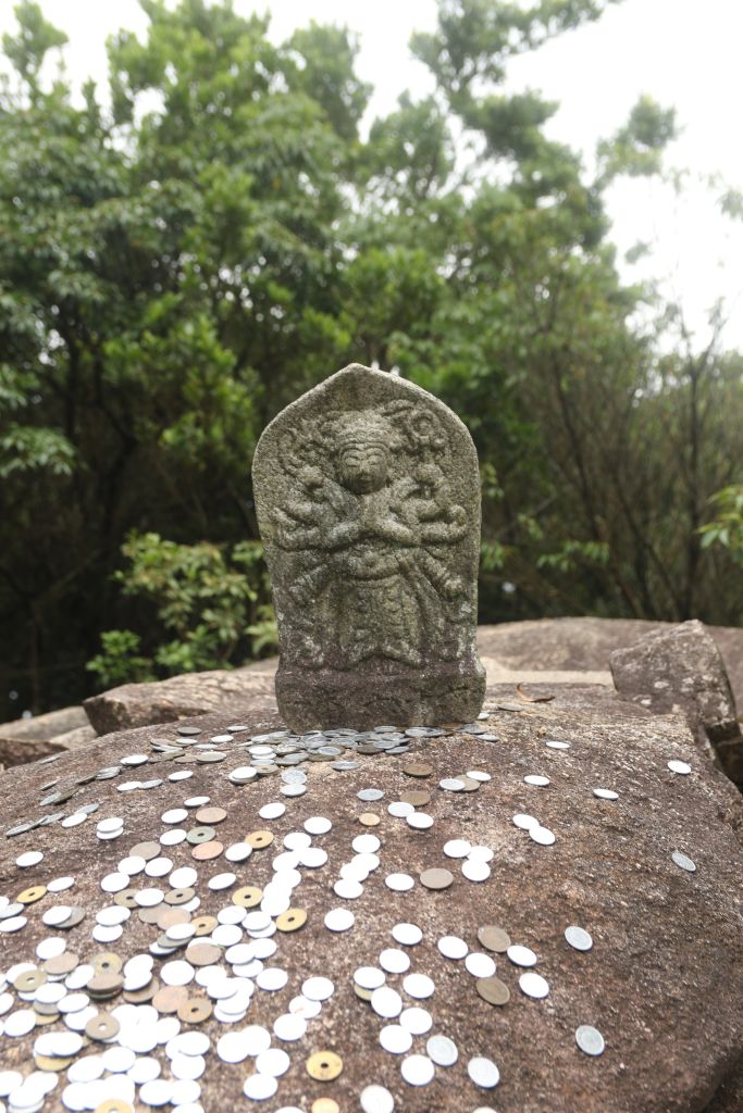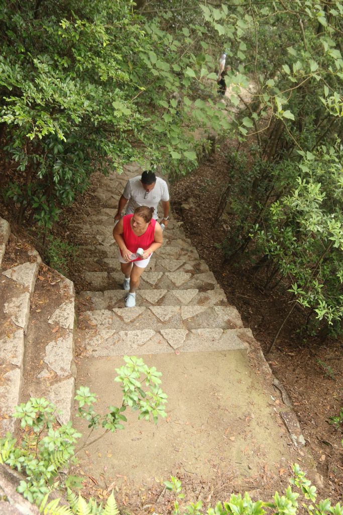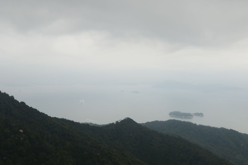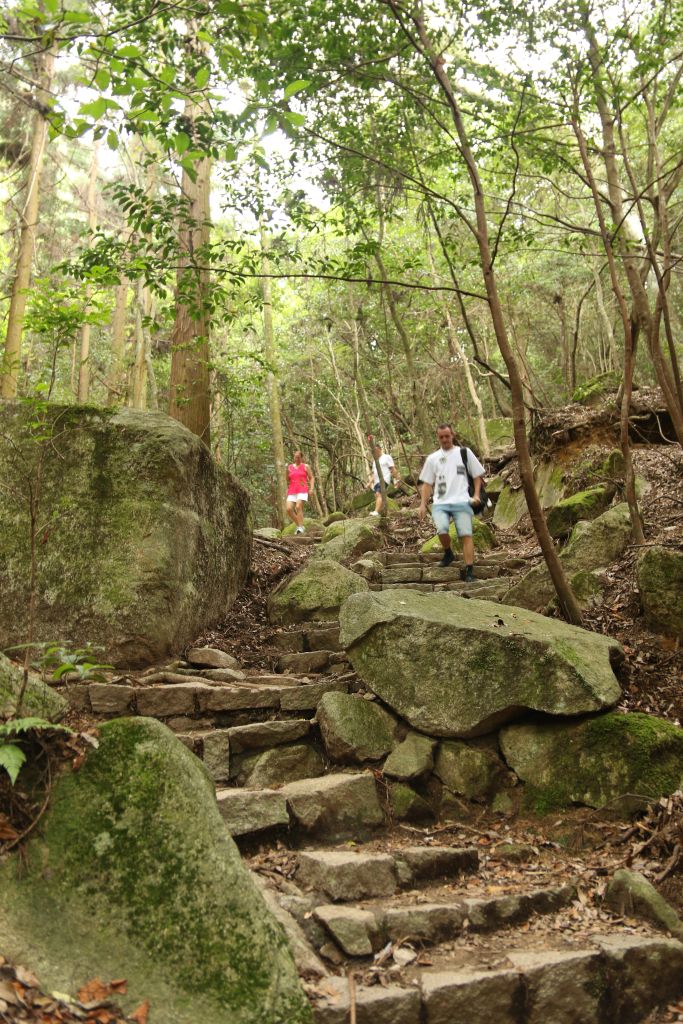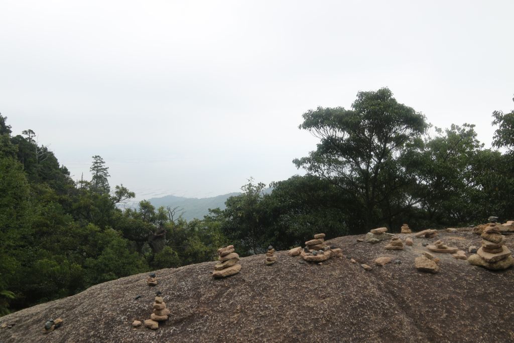 Op de piek van Mt Misen konden we rondom kijken, en er stond ook een welkom briesje. Ookal was de temperatuur vandaag slechts 30 graden, de luchtvochtigheid tikte de 85% aan, dus het was gewoon weer gutsen geblazen.