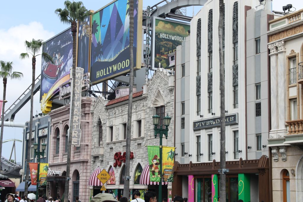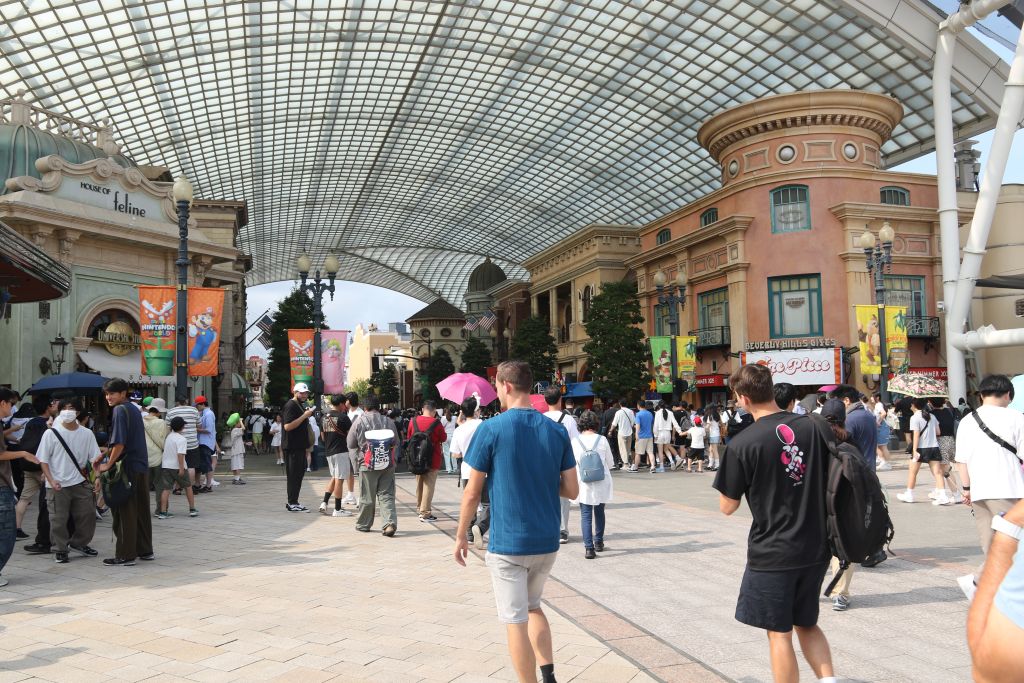 Ook wij gingen naar de rij, maar omdat het park inmiddels open was, ging het vrij snel en waren we dus rap binnen. Zoals bij de andere Universal en Disney parken, is er altijd veel te zien.