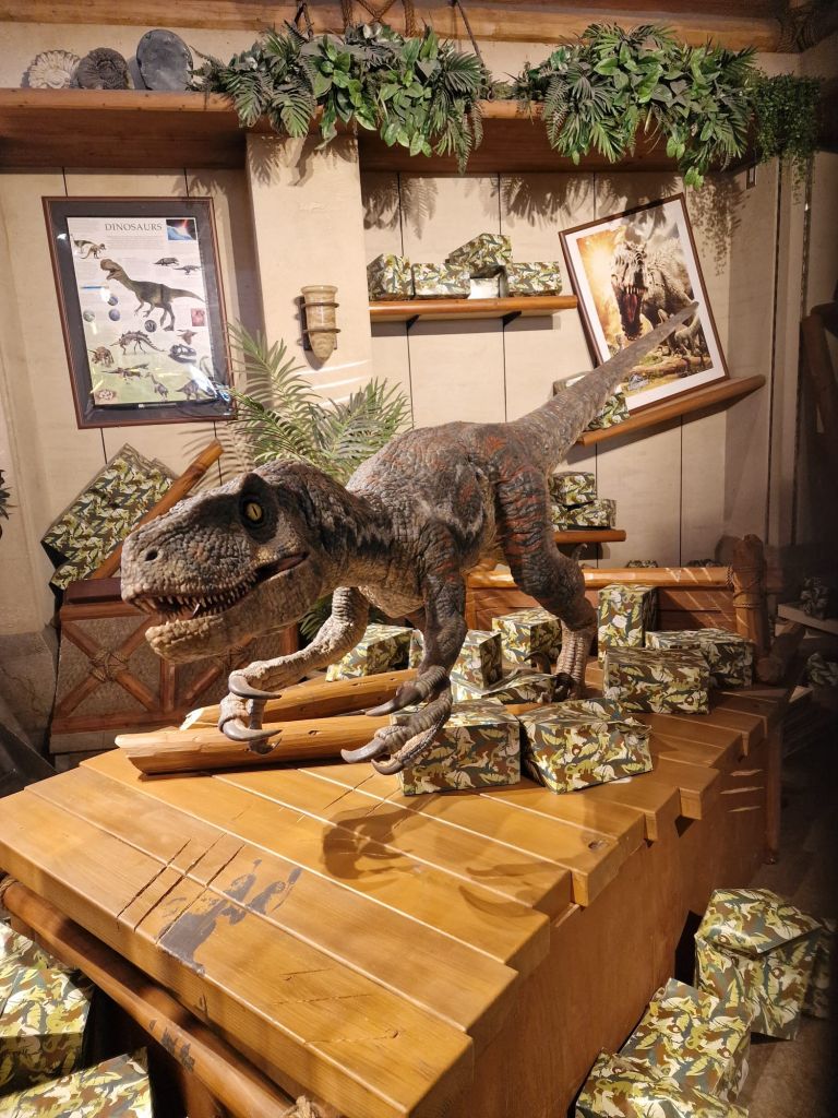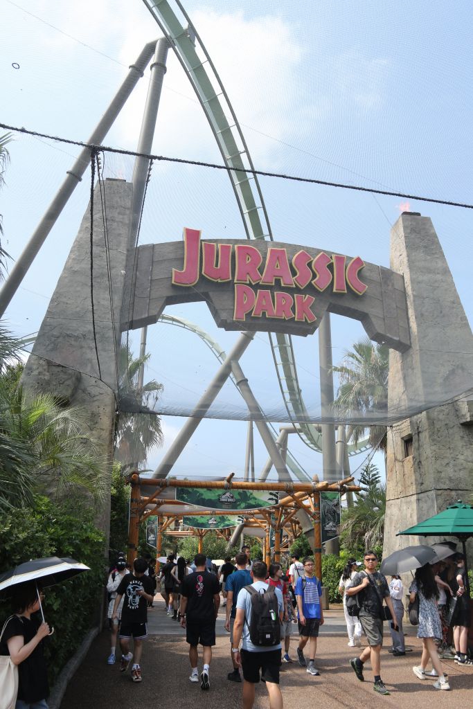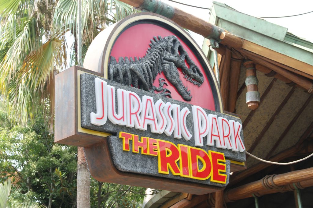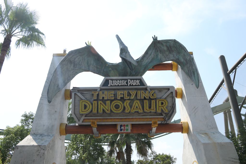 We liepen richting het Minion gebied, langs de Jaws set en door Jurrasic Park omdat daar nog een andere leuke achtbaan was, the Flight of the Dinosaur, waar je onder de baan hangt.