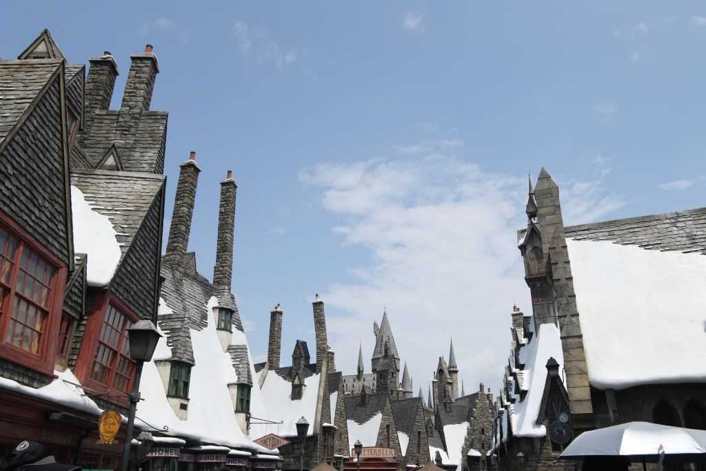 Nadat het wat gezakt was, gingen we ook nog even een kleine kinderachtbaan, the Flight of the Hippogriff, in. We pasten maar net in de karretjes met onze knieën. Niet dat we nou zo groot zijn natuurlijk, maar de Japanners zijn echt gemiddeld een stuk kleiner.