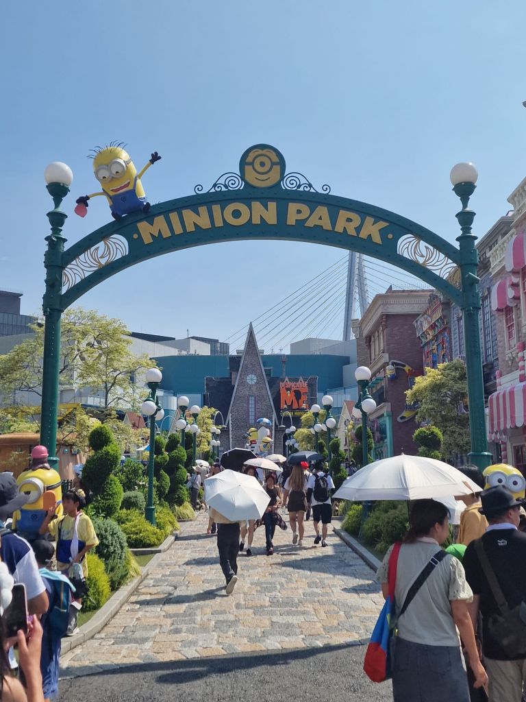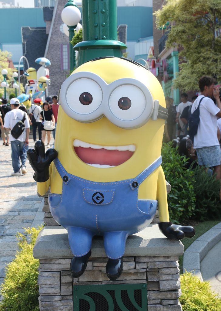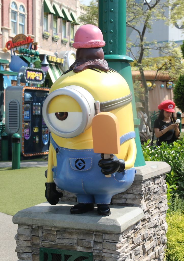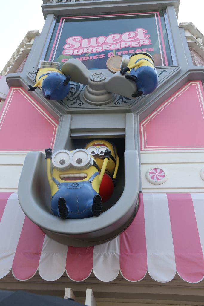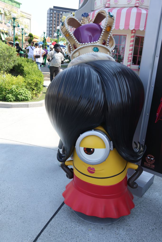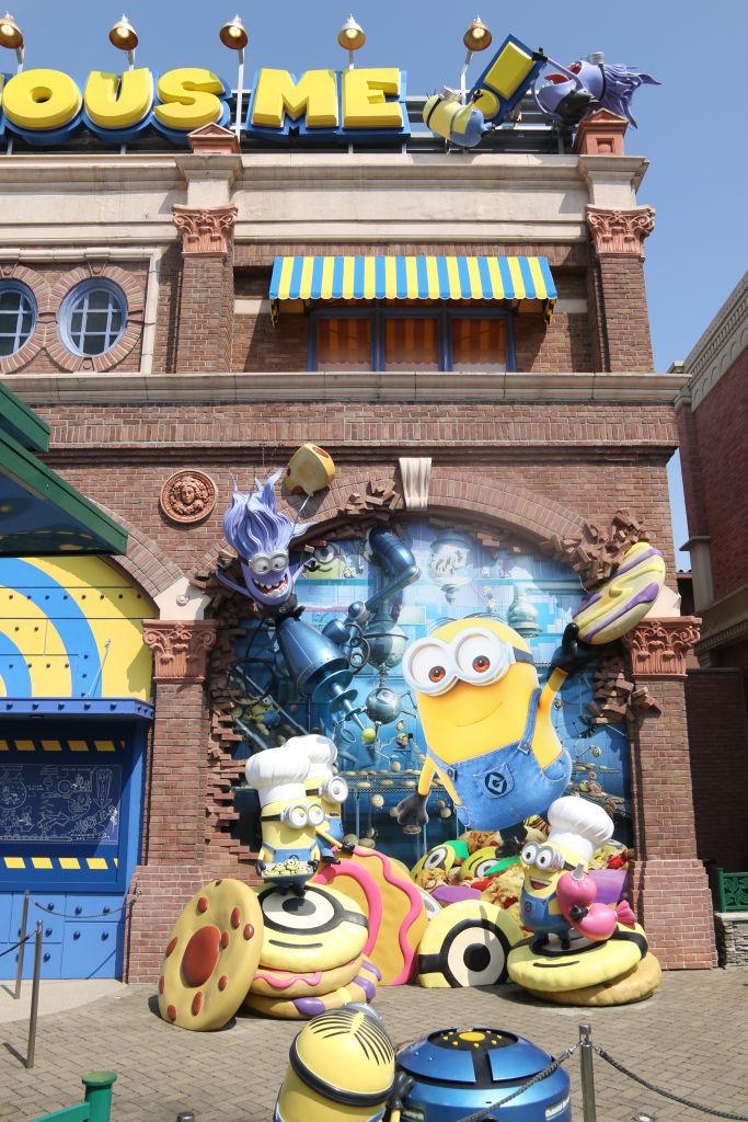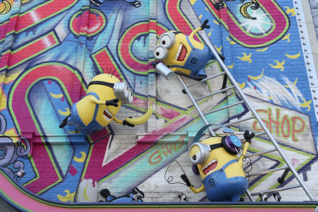 In het Minion gebied was er een leuke attractie waar je vanaf een lopende band op van alles moest schieten om punten te scoren. De hele hal er naar toe was al superleuk, je liep zogenaamd over een slechterikken beurs.