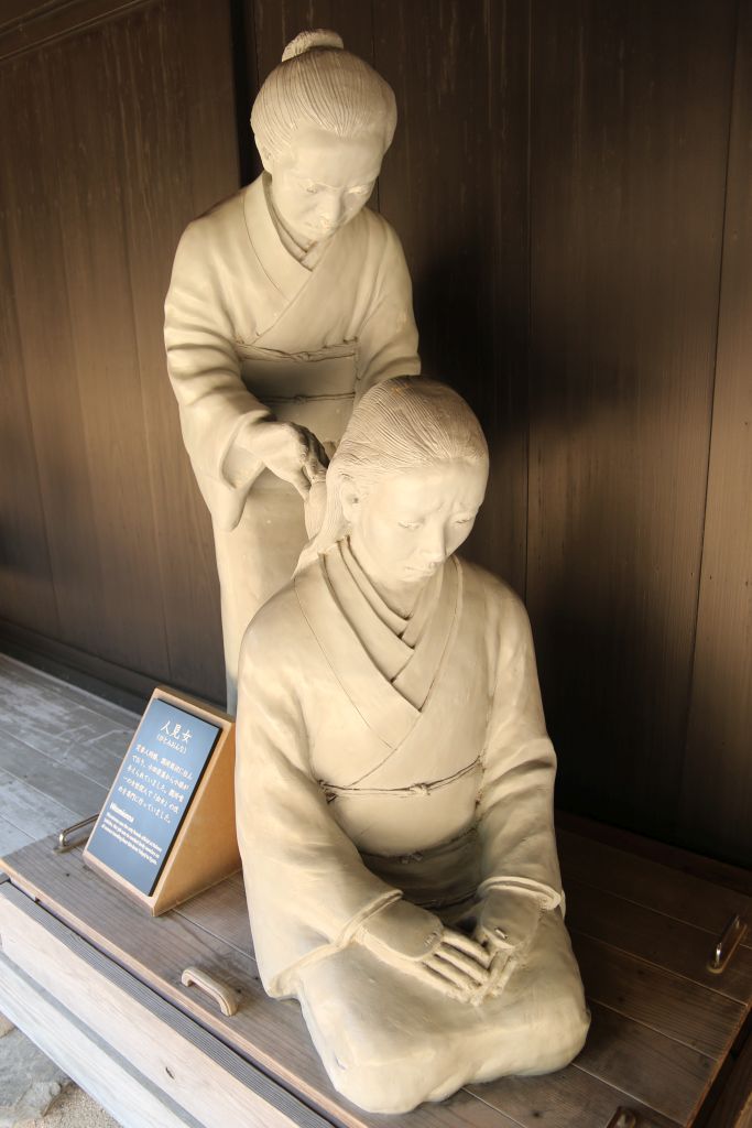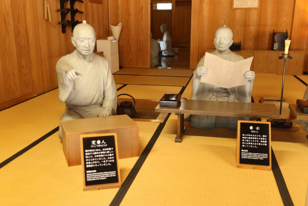 We liepen eerst langs het checkpoint. Dit was een gereconstrueerd checkpoint uit de tijd dat Tokio nog Edo heette en de weg tussen Kyoto en Edo via dit punt liep. Iedereen moest hier langs en vooral vrouwen werden streng gecontroleerd omdat die niet zomaar hun huis mochten verlaten.