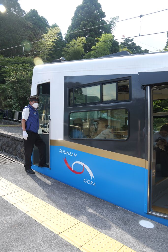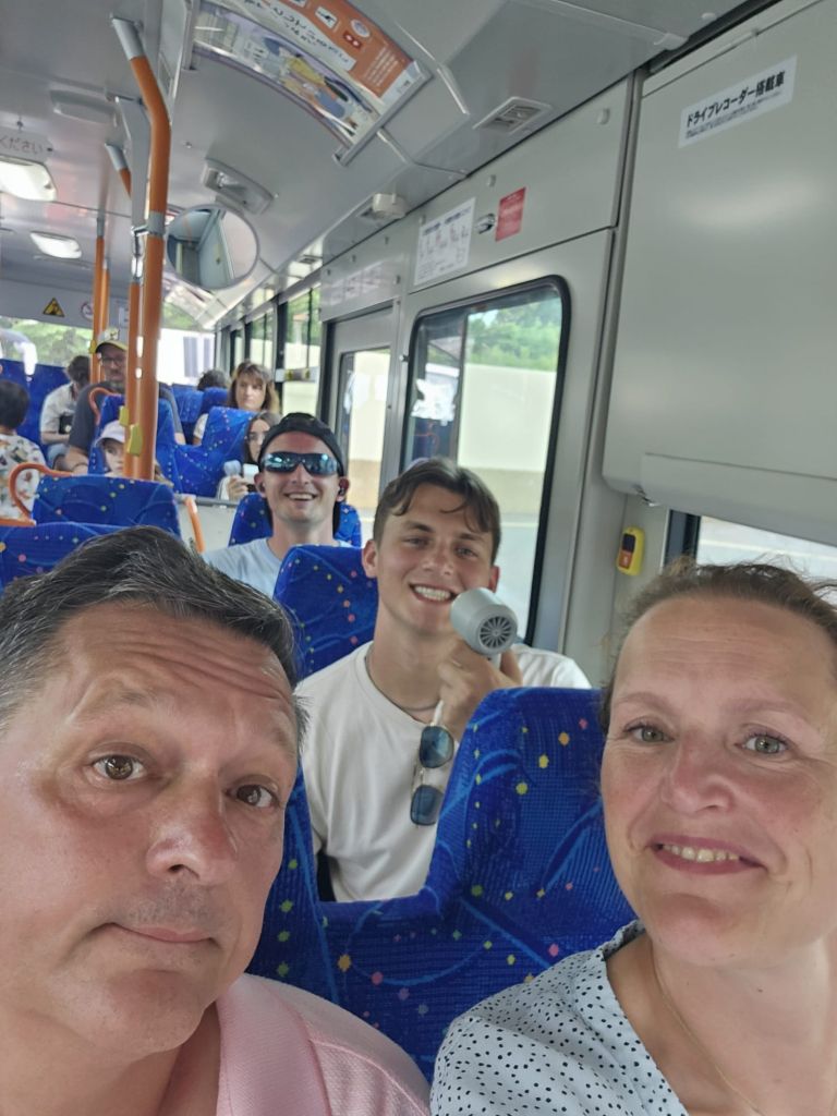 Omdat we hierna niet veel meer hoefden te lopen, wilde Colin graag nog mee in plaats van met de taxi terug naar het hotel. We namen de bus naar Yumoto waar we op een treintje zouden stappen, volgens de beschrijvingen een heel leuk schattig treintje, romantisch en zo.