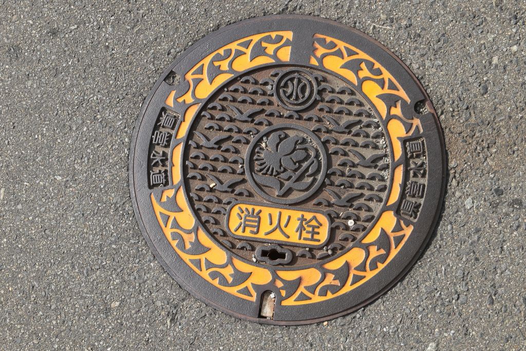 Goed, uiteindelijk gingen we op pad. We liepen naar de bushalte, het beginpunt van onze route. Onderweg liepen we nog voorbij aparte putdeksels.