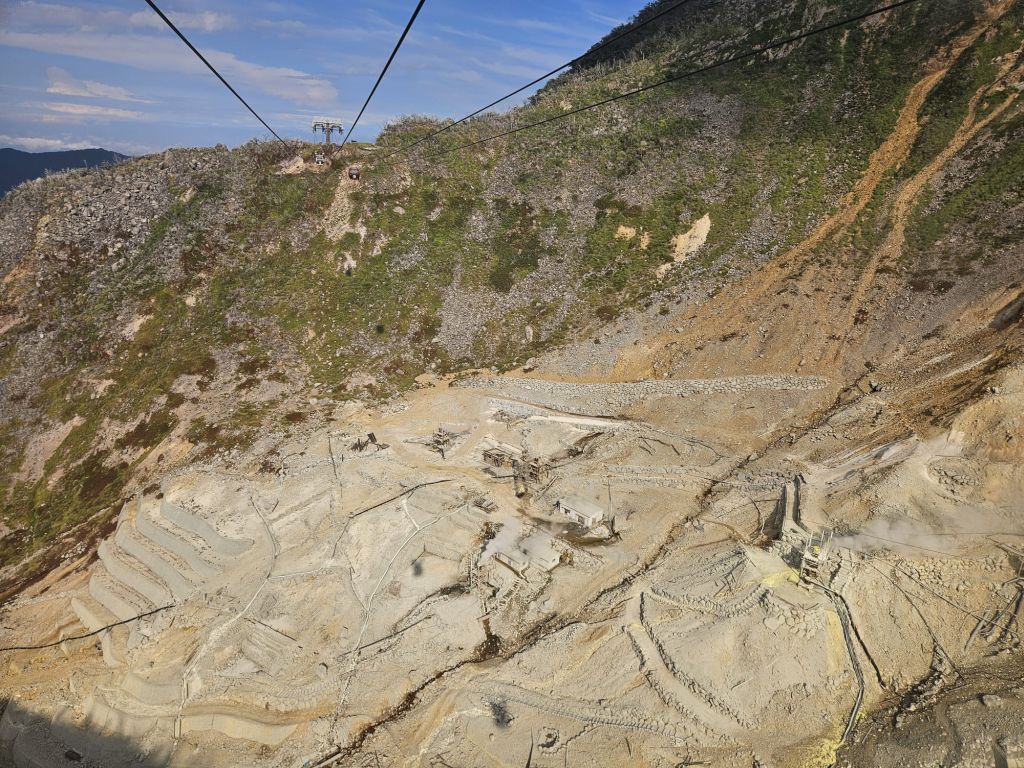 Toen we uit deze mobiele oven waren, namen we een kabelbaan. Het leuke van de kabelbaan is dat deze over de krater van een vulkaan gaat. In deze krater kun je zien dat ze zwavel aan het winnen zijn. Je kan het ook ruiken, al was dit waarschijnlijk ook het moment waarop bepaalde mensen besloten hun kringspier even te ontspannen omdat het toch niet opvalt.