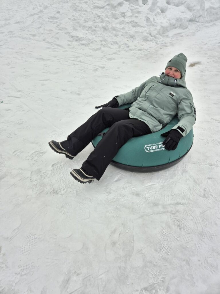 Het hotel lag aan een bevroren meer waar je vanaf een helling overheen kon sleeën.