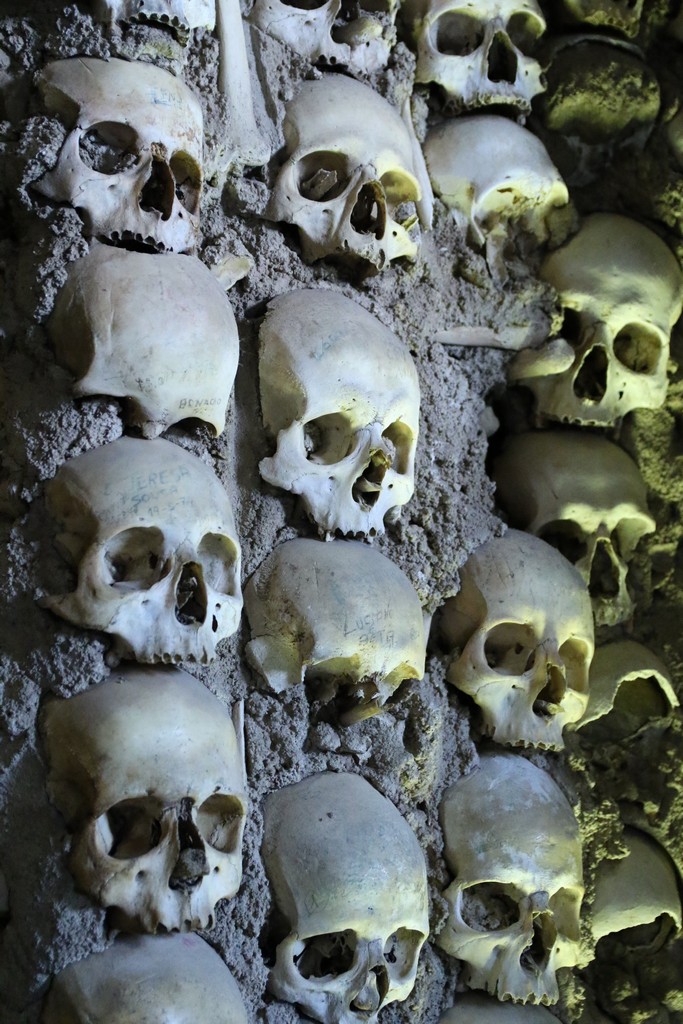 En een stukje verderop een vrij lugubere kerk, met een bottenkapel.