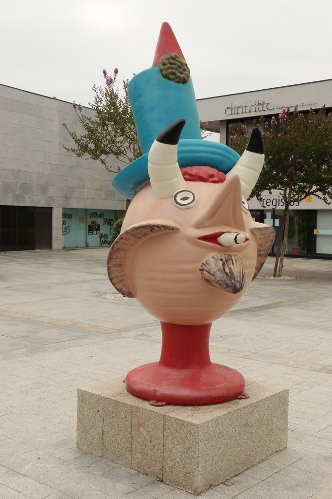We liepen door terug richting de auto en kwamen langs diverse duivelsbeelden, wat op zich vreemd was in dit dorpje aan de pelgrimsroute. Bij een museum, wederom met een grote haan voor de deur, gingen we naar binnen en daar stonden nog meer gekke kunstwerken.