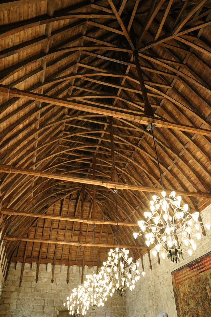 Wat wel op viel was dat alle trappen nogal uit flinke hoge tredes bestonden. En als je bedenkt dat ze vroeger maar net groter waren dan Roel van Velzen, dan vraag je je af waarom ze niet wat lagere tredes maakten. Dit was niet alleen hier, maar dat merkten we ook al in de kerken waar we de afgelopen dagen in zijn geweest.