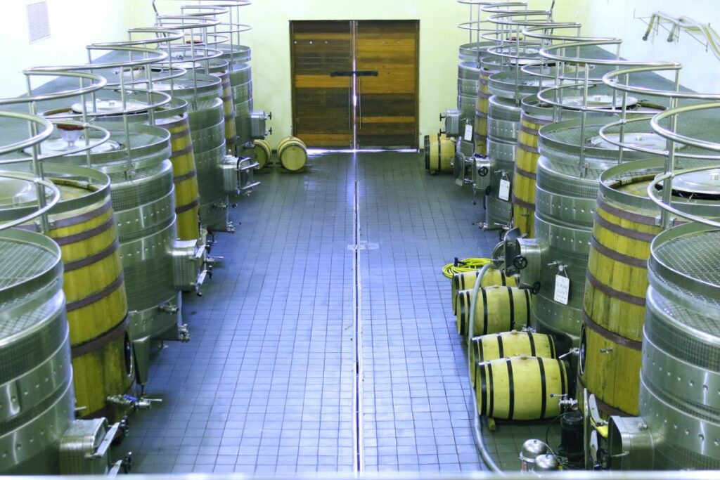 Bij het hotel aangekomen deden we even rustig aan. Om 15.00 hadden we een cellar tour en barrel tasting gepland staan. Terwijl we zaten te wachten op de wijnmeester Willy die even wat spullen moest pakken, pakten wij net even de start van de F1 mee. Go Max! Ook keken we nog even vanaf het terras op de wijnvelden.
